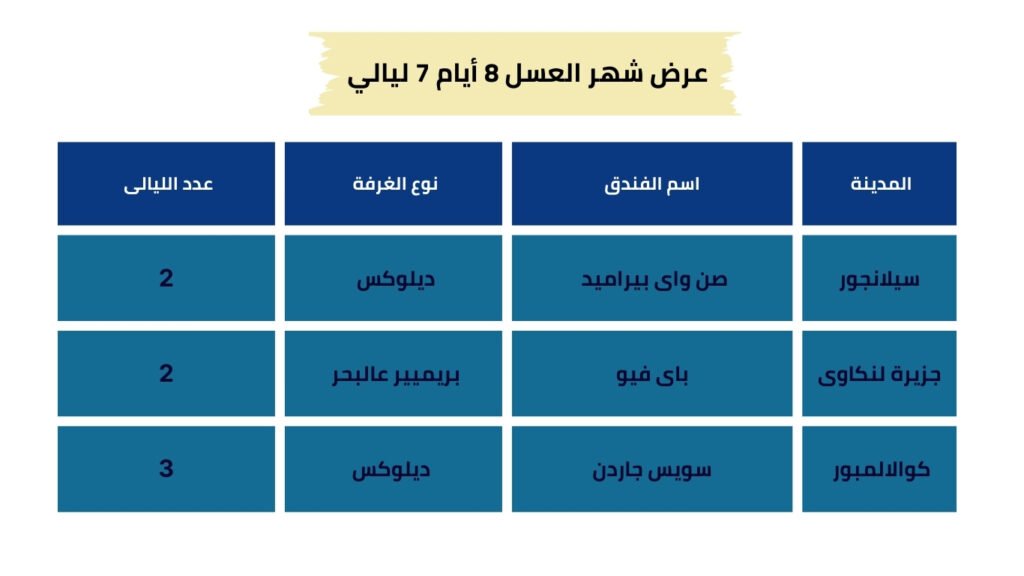 شهر عسل 5 نجوم 12 يوم 11 ليلة