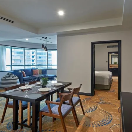 | المرافق | تكييف، مطبخ، صندوق أمانات، أريكة، بياضات أسرّة، مقبس بجانب السرير، مكتب، منطقة جلوس، تلفزيون، ثلاجة، هاتف، مرافق كي الملابس، قنوات فضائية، آلة صنع الشاي / القهوة، مكواة، راديو، ميكروويف، تلفزيون بشاشة مسطحة، أدوات مطبخ، مطبخ صغير، ميني بار |