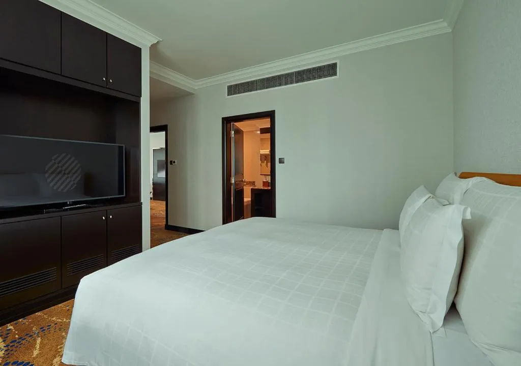 | المرافق | تكييف، صندوق أمانات، بياضات أسرّة، مقبس بجانب السرير، مكتب، تلفزيون، هاتف، مرافق كي الملابس، قنوات فضائية، آلة صنع الشاي / القهوة، مكواة، راديو، تلفزيون بشاشة مسطحة، ميني بار، غرفة ملابس، أرض مغطاة بالسجاد، غلاية كهربائية، قنوات كابل، خدمة إيقاظ، ساعة منبّهة، خزانة، حمّالة ملابس. |