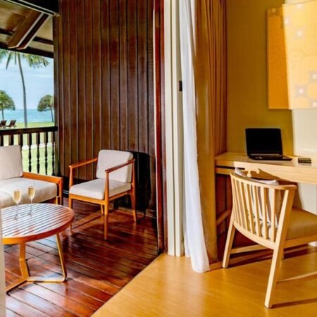 الوصف يوفر هذا الجناح الذي تبلغ مساحته 97 متر مربع مساحة معيشة إضافية وإمكانية الوصول المباشر إلى الشاطئ، ويتميز بقربه من مرافق المنتجع، كما تم تجهيزه بأسقف عالية وشرفتين مسقوفتين خاصتين، فيما يشمل الحمّام الداخلي الرخامي لوازم استحمام فاخرة.